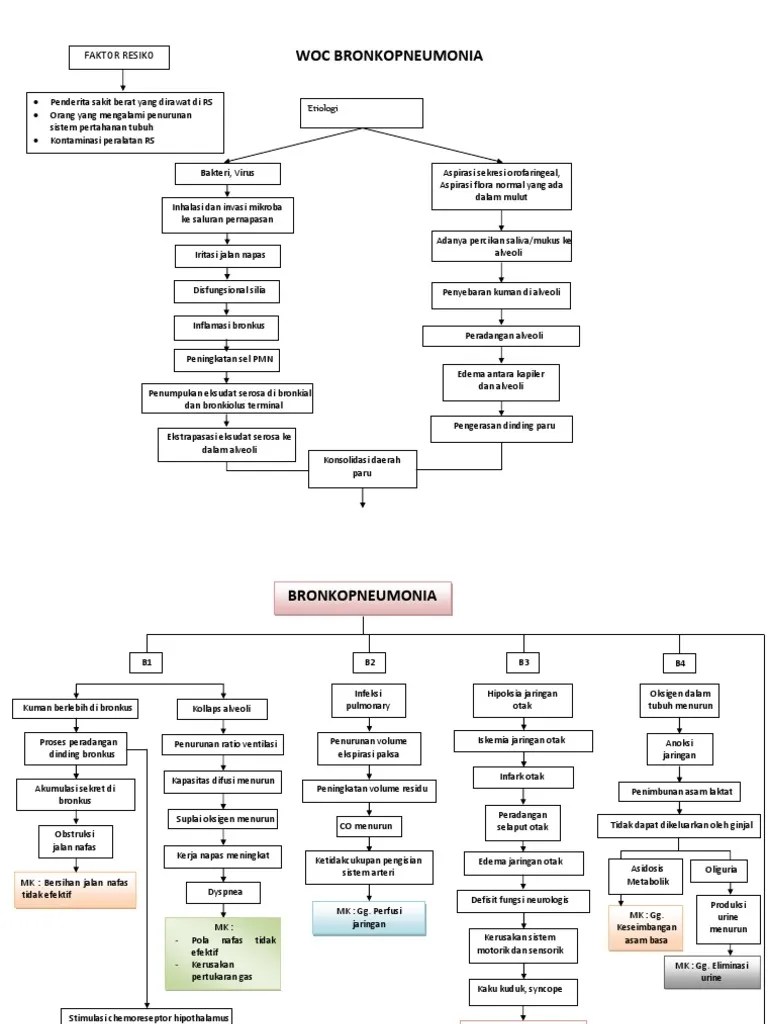 Pathway Bronkopneumonia : Askep Lengkap Bronkopneumonia Pada Anak Pdf : Proses ini berjalan terus dan basil terus difagosit atau berkembang biak di dalam sel.. Bronkopneumonia yang dirawat di rumah sakit oleh : I karya tulis ilmiah asuhan keperawatan pada klien anak dengan bronkopneumonia yang dirawat di rumah sakit untuk memperoleh gelar ahli madya keperawatan (amd.kep) pada jurusan … Meradang, mengakibatkan timbulnya bronkopneumonia, membentuk tuberkel, dan seterusnya.pneumonia seluler ini dapat sembuh dengan sendirinya. Proses ini berjalan terus dan basil terus difagosit atau berkembang biak di dalam sel. Makrofag yang mengadakan infiltrasi menjadi lebih panjang dan sebagian bersatu membentuk sel tuberkel epiteloid yang dikelilingi oleh limfosit …